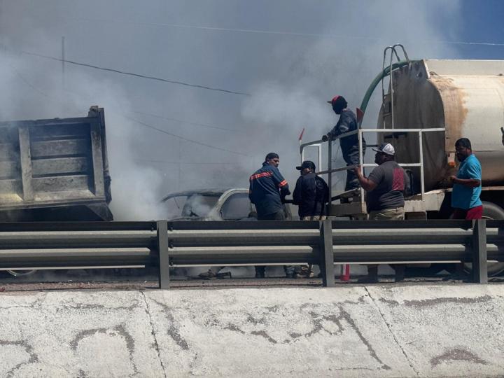 Como primeros respondientes, acudieron elementos de Seguridad Vial y Movilidad, así como policías de la Guardia Civil Municipal. Posteriormente se sumaron integrantes de Protección Civil Municipal, para realizar labores de limpieza de la zona y combate del fuego.