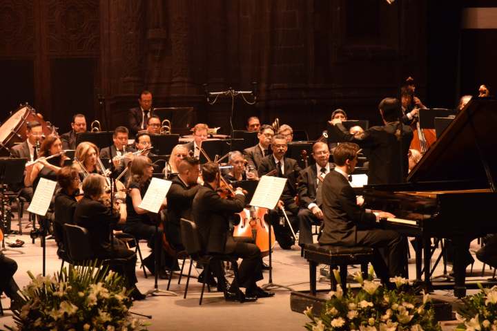 Después de unas palabras de reconocimiento para recordar a las y los músicos que pertenecieron a la Orquesta, los asistentes disfrutaron de la Sinfonía no.1 en fa menor de Dmitri Shostakovich y del concierto para piano y orquesta no. 2 en Do menor de Sergei Rachmaninov, este último con la participación del pianista Vladimir Petrov. Ambas interpretaciones fueron dirigidas por el director huésped, Eduardo García Barrios.