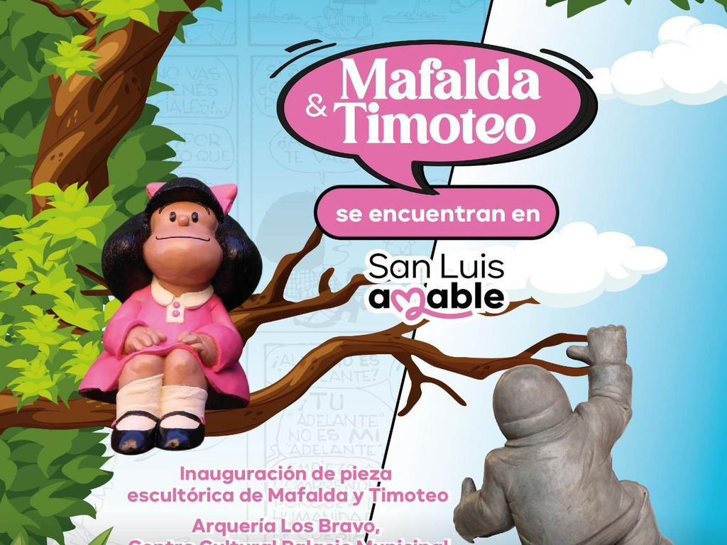 La pieza está integrada por la entrañable figura de Mafalda y “Retrato” de Timoteo.