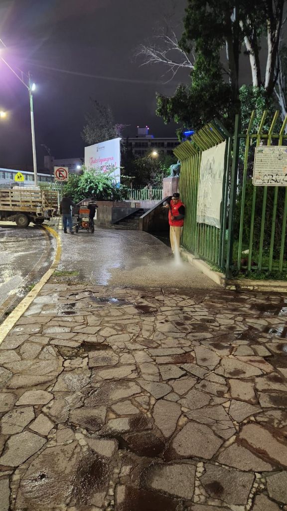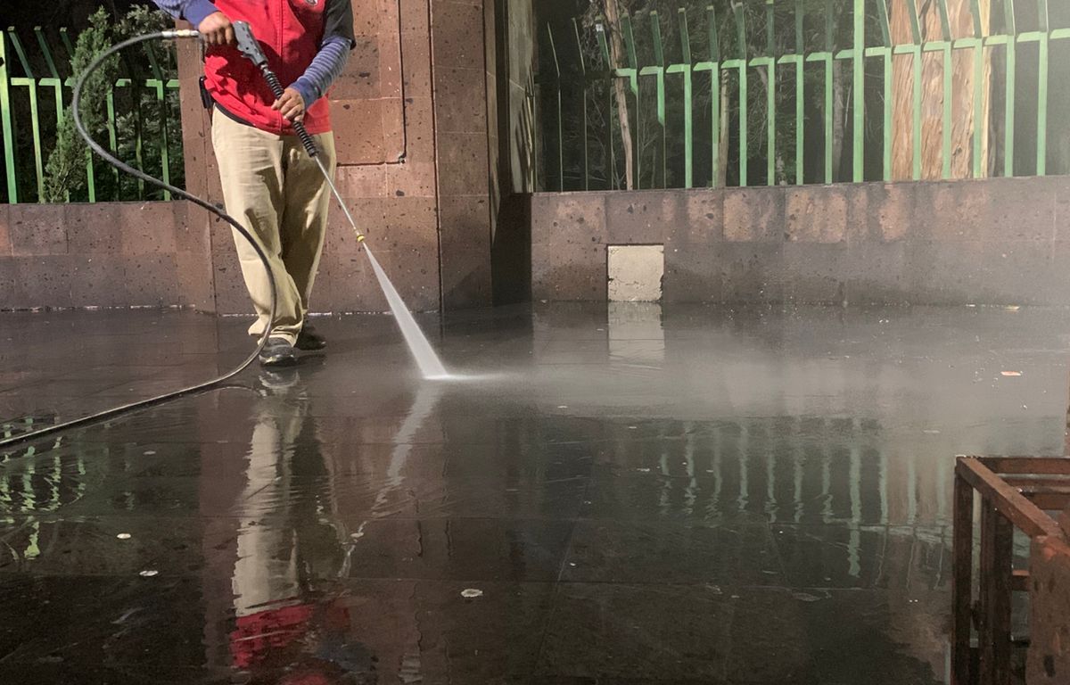 Personal de Servicios Municipales trabajó en horario nocturno para no afectar las actividades y utilizó equipo especial de hidrolavado para retirar la suciedad acumulada