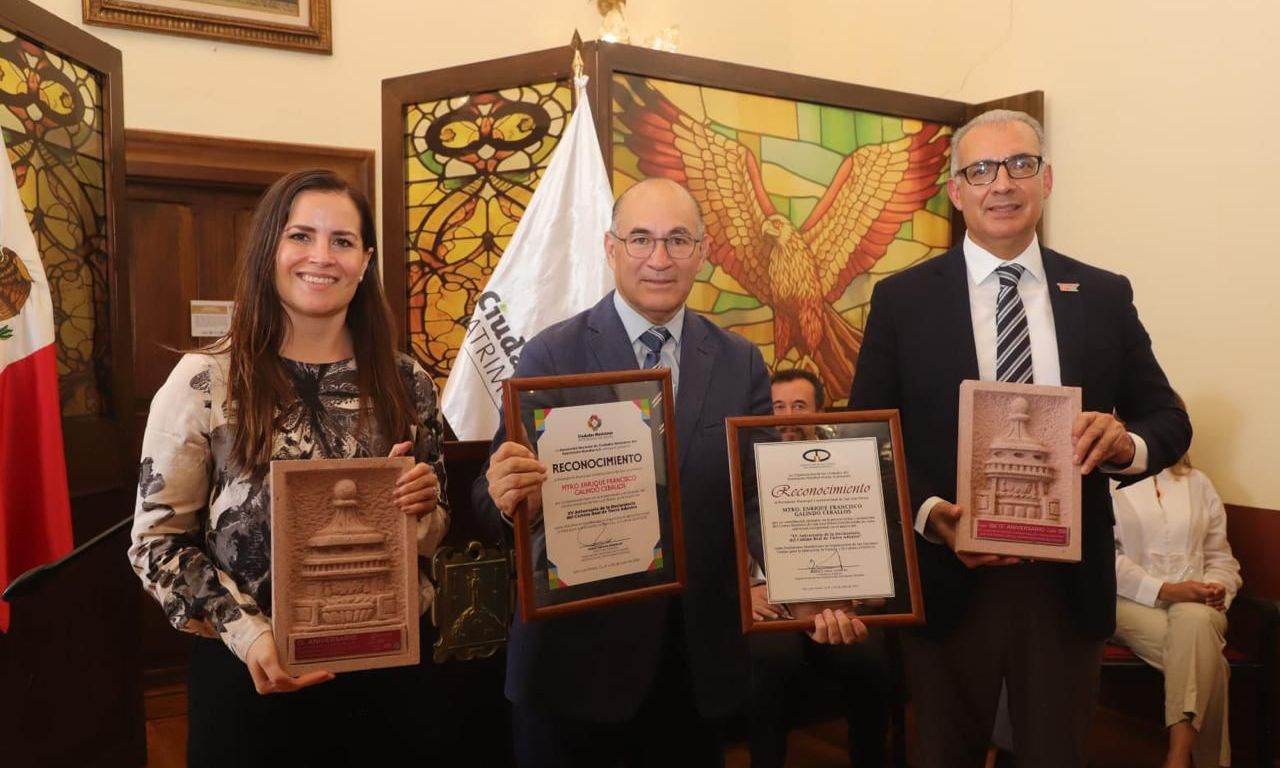 Tanto la representante de la Organización de Ciudades Patrimonio Mundial y de la Asociación Nacional de Ciudades Mexicanas del Patrimonio Mundial entregaron al Presidente Municipal Enrique Galindo reconocimientos por su liderazgo y acciones a favor del Centro Histórico Capitalino.
