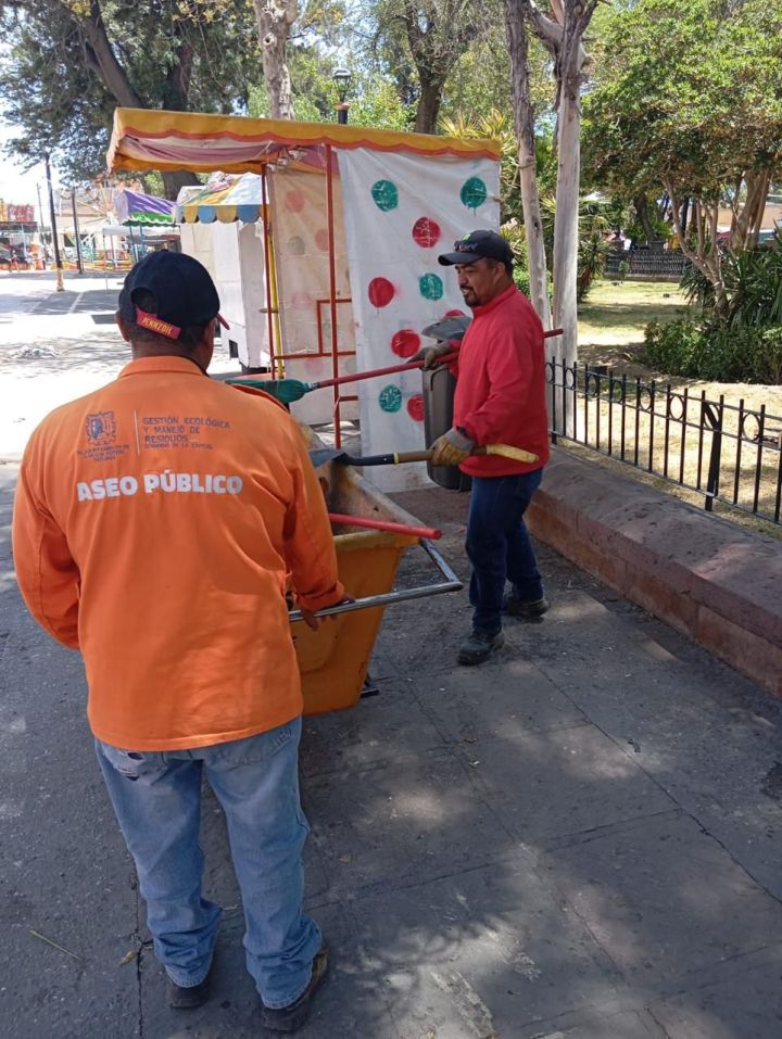 Asimismo, en el tradicional Barrio de Tlaxcala se efectuó limpieza integral en el templo, abarcando el atrio, la explanada, el jardín y su perímetro. Estas acciones forman parte del esfuerzo permanente del gobierno municipal por mantener espacios públicos limpios, seguros y accesibles para todas y todos.