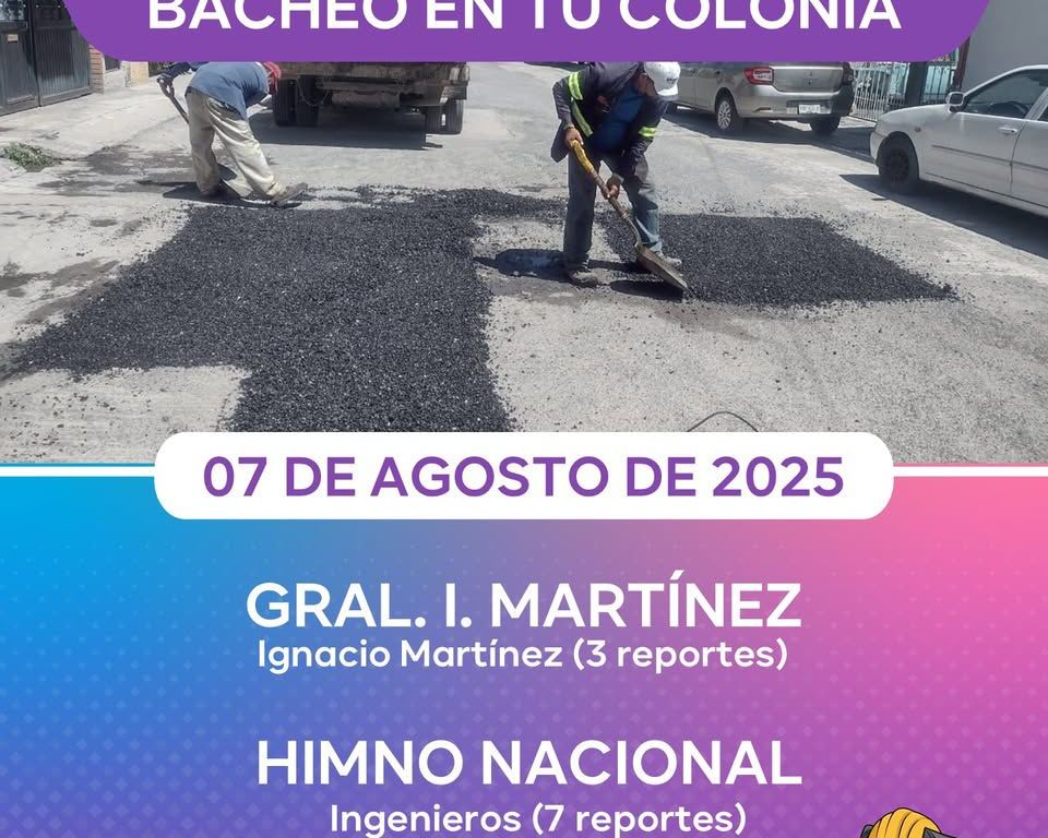 La Dirección de Obras Públicas continúa con labores preventivas y de respuesta inmediata: se reparó una rejilla en Eje 104 de la Zona Industrial; se atienden 37 reportes de bacheo emergente en distintas colonias; y avanzan las obras de accesibilidad en oficialías del Registro Civil.