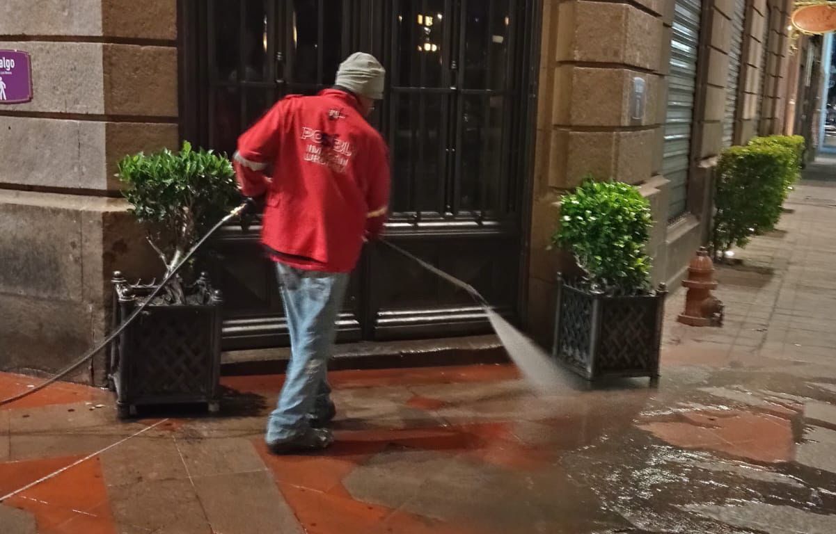 Esta intervención, realizada por la Coordinación de Imagen Urbana, forma parte de una estrategia para mantener en óptimas condiciones las áreas de mayor afluencia peatonal, eliminando residuos, manchas y bacterias que se acumulan por el constante tránsito diario.