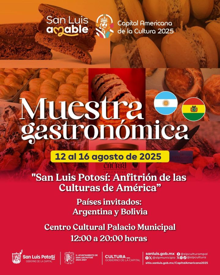 San Luis Potosí Capital Americana de la Cultura 2025 recibe esta semana a los países sudamericanos de Argentina y Bolivia, quienes ofrecerán una probada de su muestra gastronómica y artesanal, además de un interesante intercambio artístico en Plaza de Armas y en el Centro Cultural Palacio Municipal.
