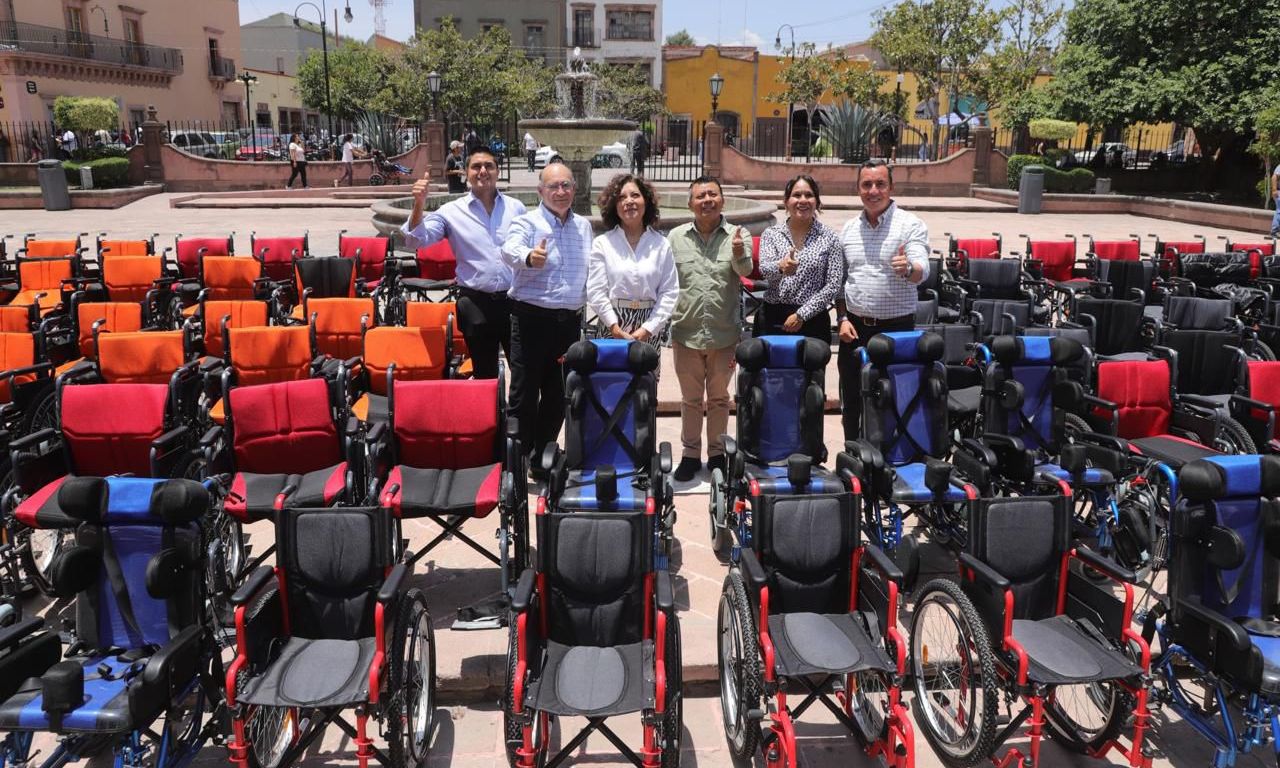 En la Plaza de Aranzazú, en un evento que refleja el compromiso del Gobierno Municipal y del Sistema DIF Capitalino con la inclusión y el bienestar de la población, el Alcalde Enrique Galindo Ceballos y la Presidenta del DIF Municipal, Estela Arriaga Márquez, encabezaron la entrega masiva de sillas de ruedas y bastones a niñas, niños, adolescentes, personas adultas y adultas mayores, tanto con como sin discapacidad: «No solo entregamos una ayuda técnica, entregamos libertad, confianza y la oportunidad de seguir avanzando hacia un San Luis más inclusivo y amable para todas y todos», dijo la Presidenta del DIF Capitalino, Estela Arriaga.