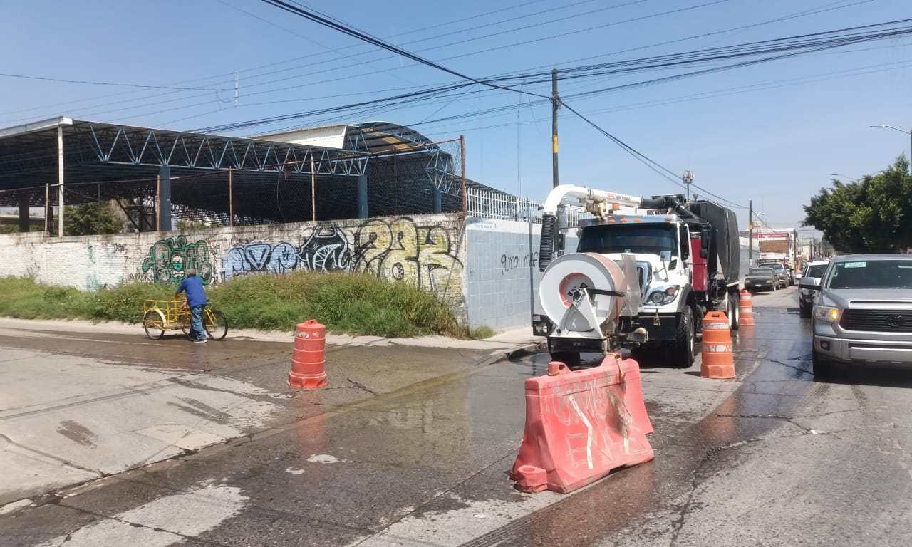 Personal del organismo operador INTERAPAS realizó trabajos de limpieza en la red sanitaria ubicada en las calles República de Perú y República de Uruguay, la colonia Simón Díaz, donde la acumulación de residuos provocaba una fuga de aguas residuales.