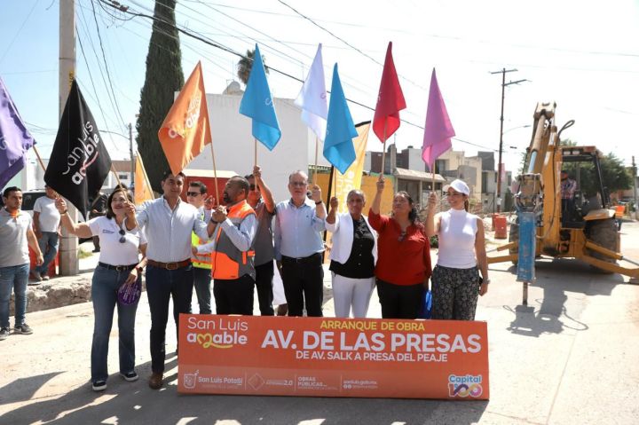 Este viernes, el Ayuntamiento de SLP arrancó con la regeneración integral en la avenida De las Presas, en la colonia Aguaje 2000, que además del reencarpetamiento incluye infraestructura hídrica y mejoras del alumbrado público.