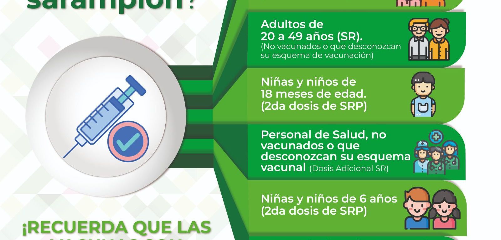 En las unidades de salud se cuenta con la vacuna SRP (Sarampión, Rubéola y Parotiditis) a niñas y niños de 12 y 18 meses de edad y de 6 años, la vacuna SR (Sarampión y Rubéola) a adolescentes de 10 a 19 años que no estén vacunados, adultos de 20 a 49 años, personal de salud y personal educativo que desconozcan su esquema de vacunación.
