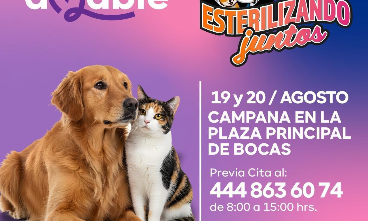Para tener presencia en todo el Municipio, la campaña “Esterilizando Juntos” llegará este martes 19 y miércoles 20 hasta la Delegación de Bocas, por lo que el Gobierno de la Capital extiende su invitación a la población de esta demarcación para aprovechar estas cirugías gratuitas a favor de perros y gatos, las que se realizarán en la plaza principal delegacional.