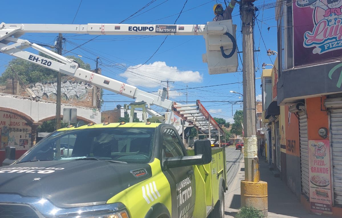 Asimismo, la Coordinación de Alumbrado Público trabajó en las esquinas con Satélite Sur y Papagayos, donde se reconectaron líneas de postes con doble luminaria, se retiró sarro acumulado y se reparó un circuito aterrizado, con lo que se logró restablecer el servicio en su totalidad.