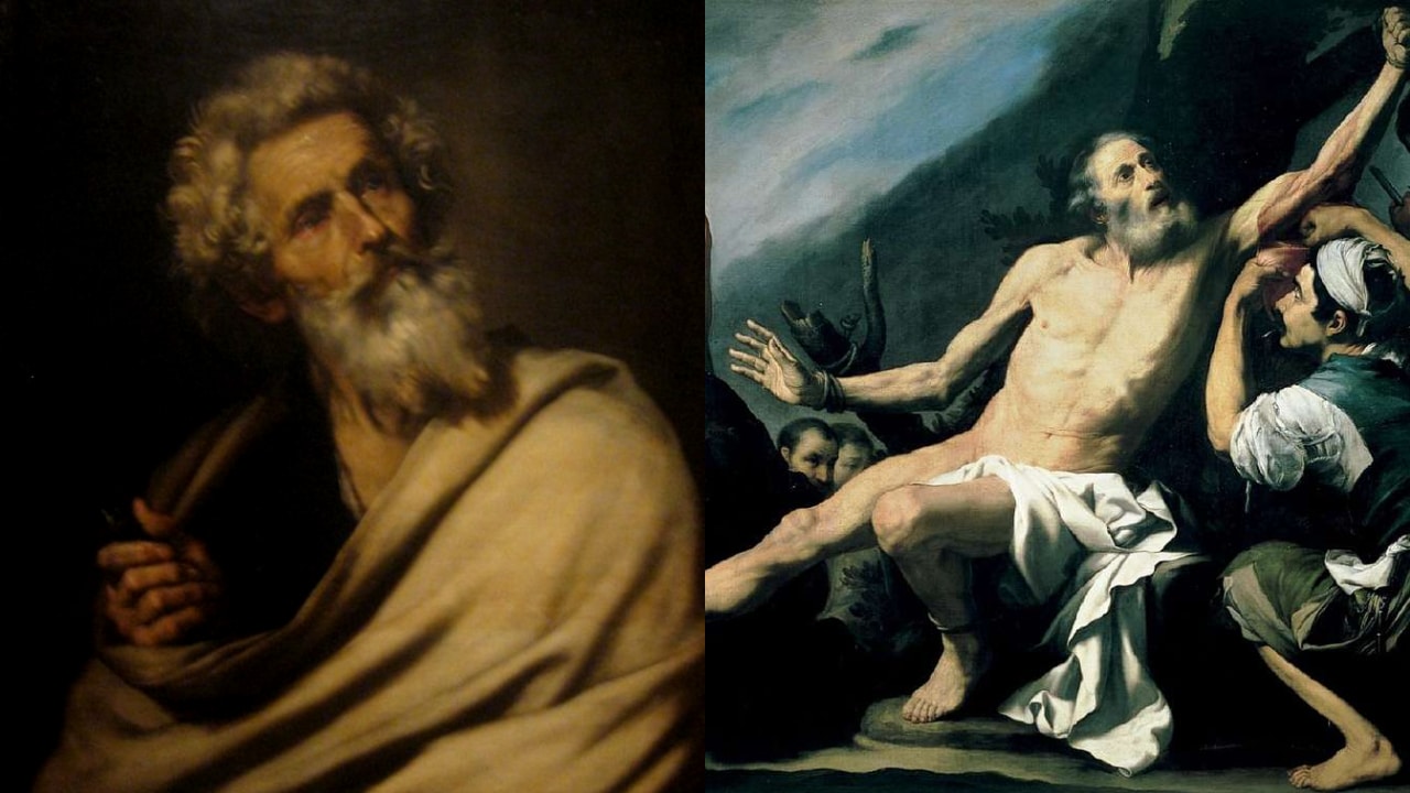 A este santo (que fue uno de los doce apóstoles de Jesús) lo pintaban los antiguos con la piel en sus brazos como quien lleva un abrigo, porque la tradición cuenta que su martirio consistió en que le arrancaron la piel de su cuerpo, estando él aún vivo.