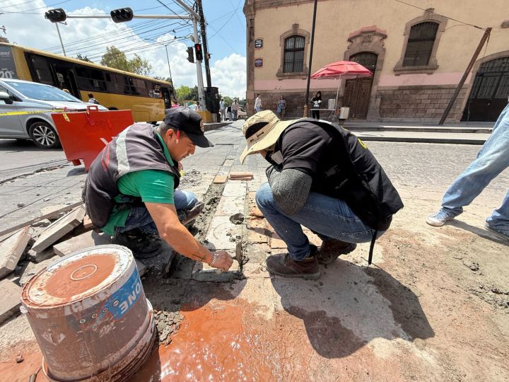 El Gobierno de la Capital de San Luis Potosí, a través de la Unidad de Gestión del Centro Histórico (UGCH), reforzó las acciones del programa emergente “Por Buen Camino”, con labores de mantenimiento vial que mejoran la movilidad y seguridad en el primer cuadro de la ciudad.