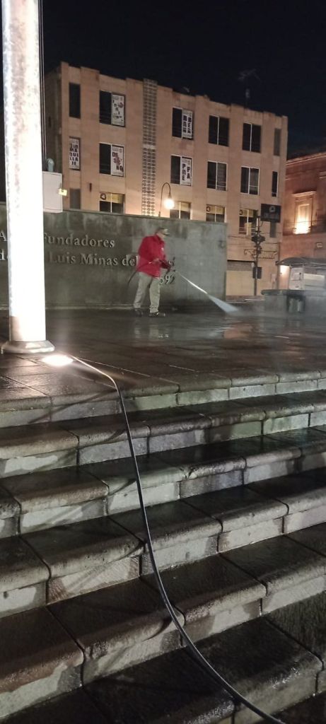 Durante la noche se realizó el hidrolavado del piso en plaza Fundadores, con el objetivo de eliminar suciedad acumulada y mejorar el aspecto de este emblemático espacio público. A la par, se llevó a cabo la limpieza en laterales de la avenida Cordillera de los Alpes, con acciones de deshierbe y recolección de basura y excedentes.