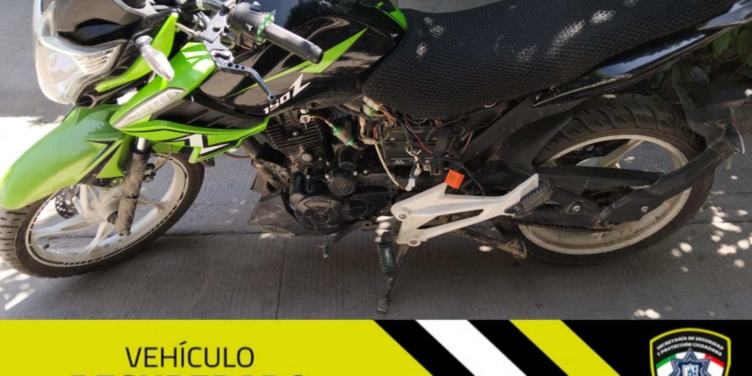 En patrullajes preventivos realizados en la colonia Progreso, oficiales de Guardia Municipal adscritos a la Jefatura regional sur localizaron una motocicleta urbana que contaba con reporte de robo.
