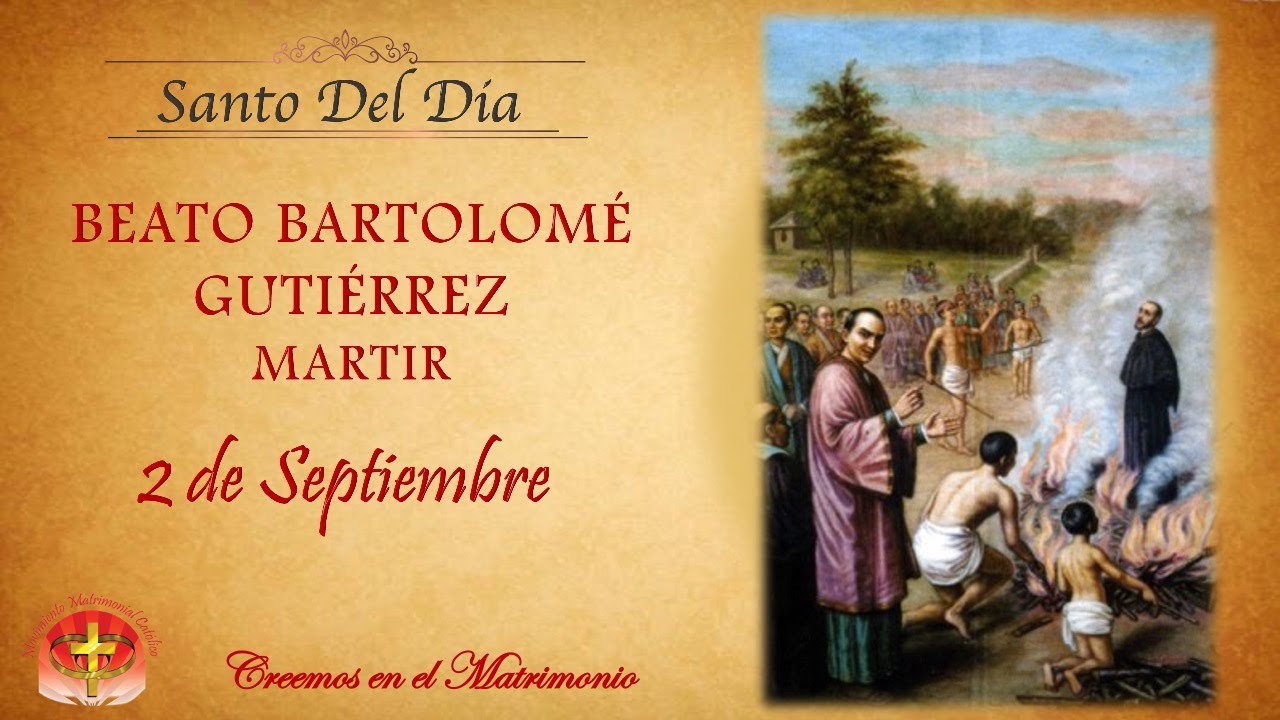 Beato Bartolomé Gutiérrez Rodríguez Nació en la ciudad de México el 4 de septiembre de 1580, hijo de Alonso Gutiérrez y Ana Rodríguez. Fue bautizado en la parroquia de Sagrario Metropolitano. Con 16 años ingresa a la orden agustina; hizo sus estudios en el convento de Yuriria, Michoacán, profesando el 1 de junio de 1597. Ordenado sacerdote, fue trasladado a Puebla al convento de San Agustín. Por estas fechas ya tenía deseos de ser misionero y mártir, sus hermanos de religión se burlaban de él porque era muy gordo y no podría soportar las fatigas del misionero. Pero el respondía con jocosidad: “Tanto mejor, así habrá más reliquias que repartir cuando muera mártir, porque algún día iré a Filipinas y de allí a Japón donde moriré por la Fe de Cristo”. Sus palabras resultaron proféticas.