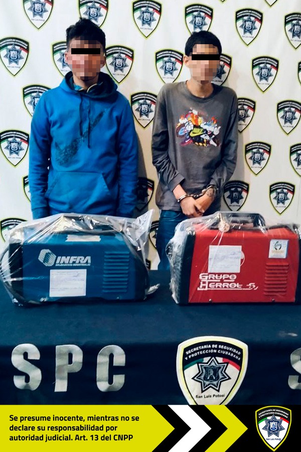 Oficiales de Guardia Municipal de la Secretaría de Seguridad y Protección Ciudadana realizaron la detención de dos jóvenes señalados por robo y daños a un comercio ubicado en la colonia Ricardo B. Anaya. Los implicados, rompieron la cortina de un local para sustraer máquinas de soldar, pero fueron sorprendidos en el acto por vecinos que alertaron a los agentes municipales.