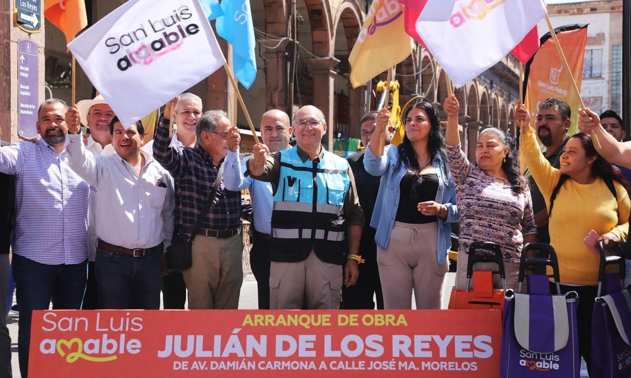 Al inaugurar los trabajos para la rehabilitación integral de la calle Julián de Los Reyes, en el primer cuadro de la ciudad, obra de alto impacto por la intensa actividad comercial y el alto tránsito vehicular que se registra en el Centro Histórico de la Capital, el Alcalde Enrique Galindo Ceballos anunció que continuará este ritmo sin precedente en San Luis Potosí en materia de obra pública.