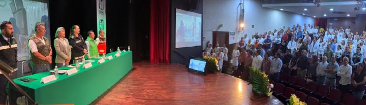 La ceremonia se realizó en el Teatro del IMSS y fue encabezada por la titular del Órgano de Operación Administrativa Desconcentrada (OOAD), doctora Angélica Cristina Rodríguez Nester. También asistió la titular de la Coordinación Técnica de Protección Civil del IMSS a nivel nacional, doctora Elizabeth Hernández Borges.