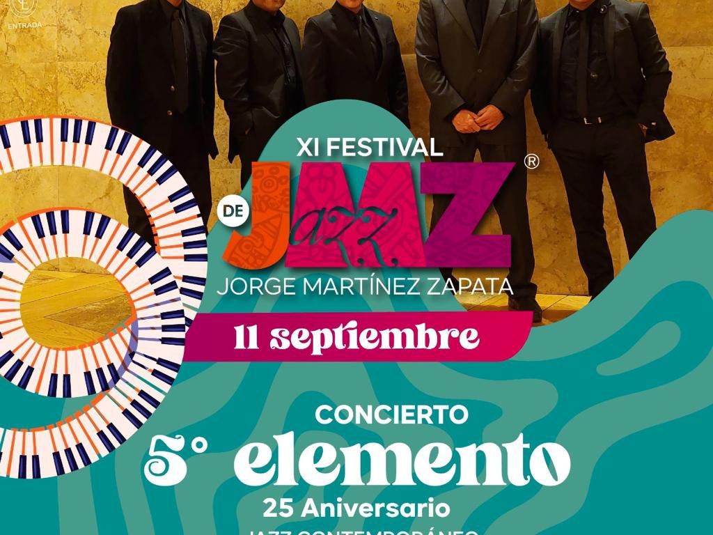 Quinto Elemento es un grupo originario de la CDMX, integrado por músicos mexicanos que realizan a través de sus conciertos una exposición sonora de jazz con diversas facetas rítmicas, melódicas y armónicas: swing, bebop, cool jazz, modal jazz, jazz latino y jazz contemporáneo, quienes participarán dentro del Festival celebrando 25 años de carrera artística.