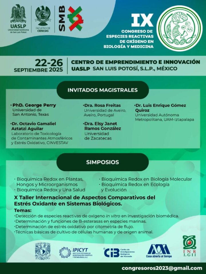 Del 22 al 26 de septiembre de 2025, la Universidad Autónoma de San Luis Potosí será anfitriona del IX Congreso de la Rama de Especies Reactivas de Oxígeno en Biología y Medicina de la Sociedad Mexicana de Bioquímica, informó la Dra. Vanessa Labrada Martagón, académica de la Facultad de Ciencias y parte del comité organizador.