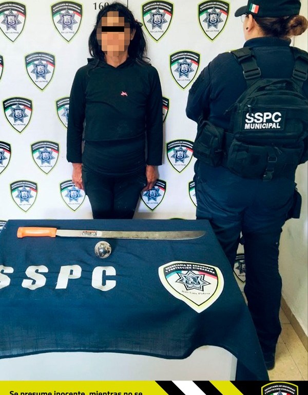 En dicha intervención notaron que la mujer, de nombre María Angélica “N” de 48 años, portaba un machete de 55 centímetros de hoja, informándole el probable hecho constitutivo de delito y del procedimiento de su detención.