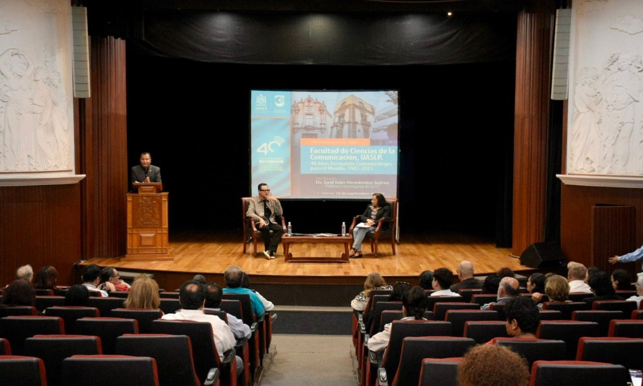 Este 12 de septiembre, en el marco de la celebración de los 40 años de historia de la Facultad de Ciencias de la Comunicación de la Universidad Autónoma de San Luis Potosí (UASLP), se llevó a cabo la presentación del libro “Facultad de Ciencias de la Comunicación UASLP, 40 años formando comunicólogos para el mundo 1985-2025”, obra del doctor Saúl Iván Hernández Juárez, profesor investigador de la institución.