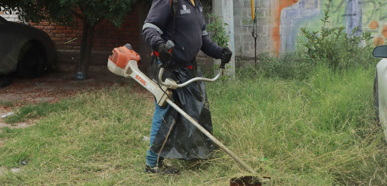Personal del Ayuntamiento y vecinos unen esfuerzos para limpiar calles y rehabilitar áreas verdes de la colonia Valle Dorado.