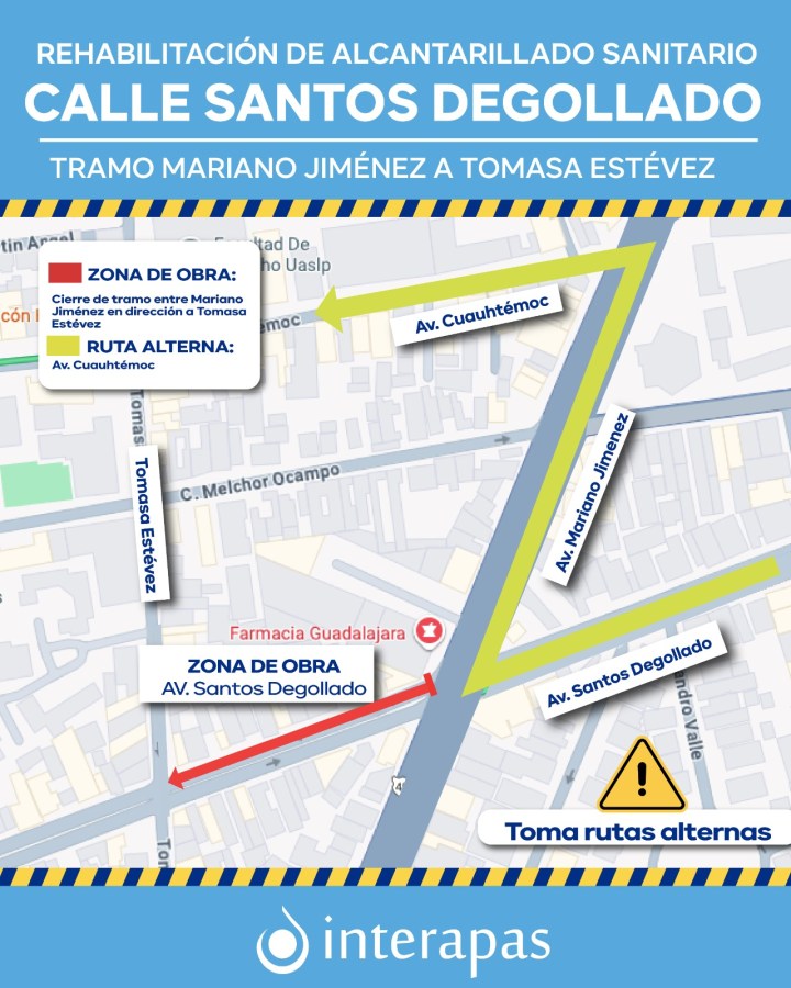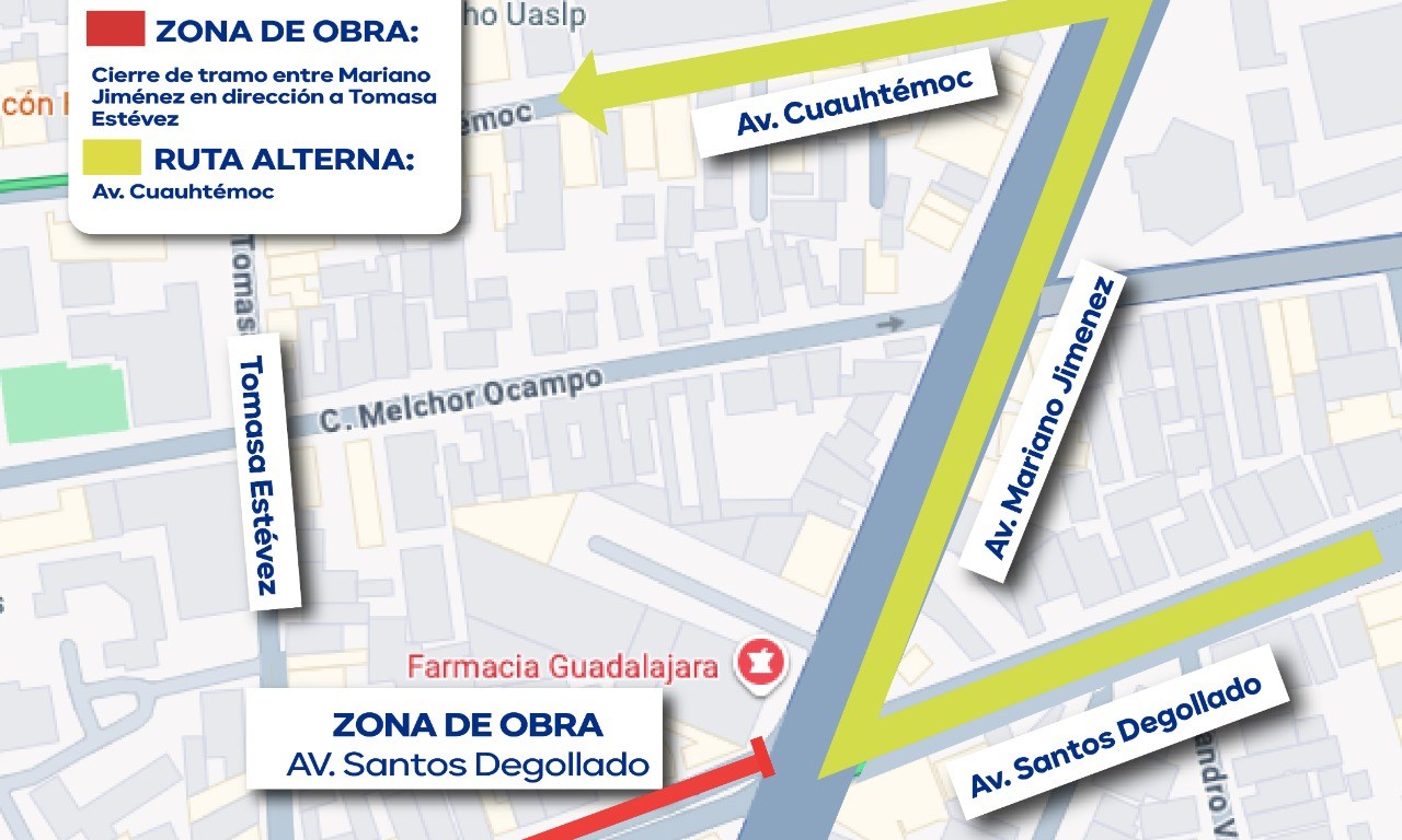 Se mantendrá un cierre vial entre Mariano Jiménez dirección Toma Esteves