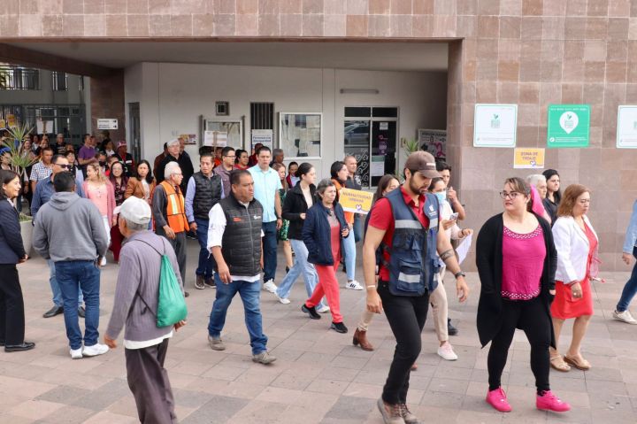 El coordinador de Protección Civil Municipal, Adrián Cortázar Ruiz, explicó que durante el ejercicio brigadas de esa dependencia coordinaron la evacuación ordenada siguiendo los protocolos establecidos, y logrando el desalojo completo del inmueble en tiempo controlado. Agregó que participaron trabajadoras y trabajadores del gobierno municipal divididos en cuadrillas de controladores, observadores y evaluadores.