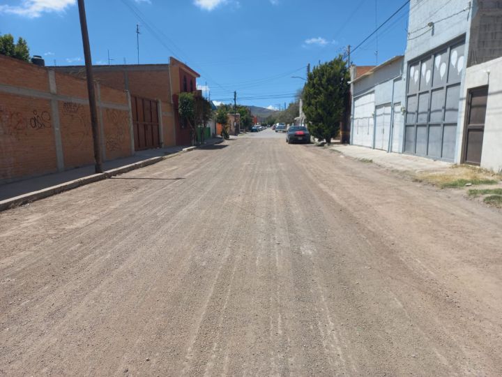 Calle República de Colombia (Satélite), ya cuenta con base hidráulica tendida, reparación de tomas domiciliarias y afinado de base en su cruce con avenida Constitución.