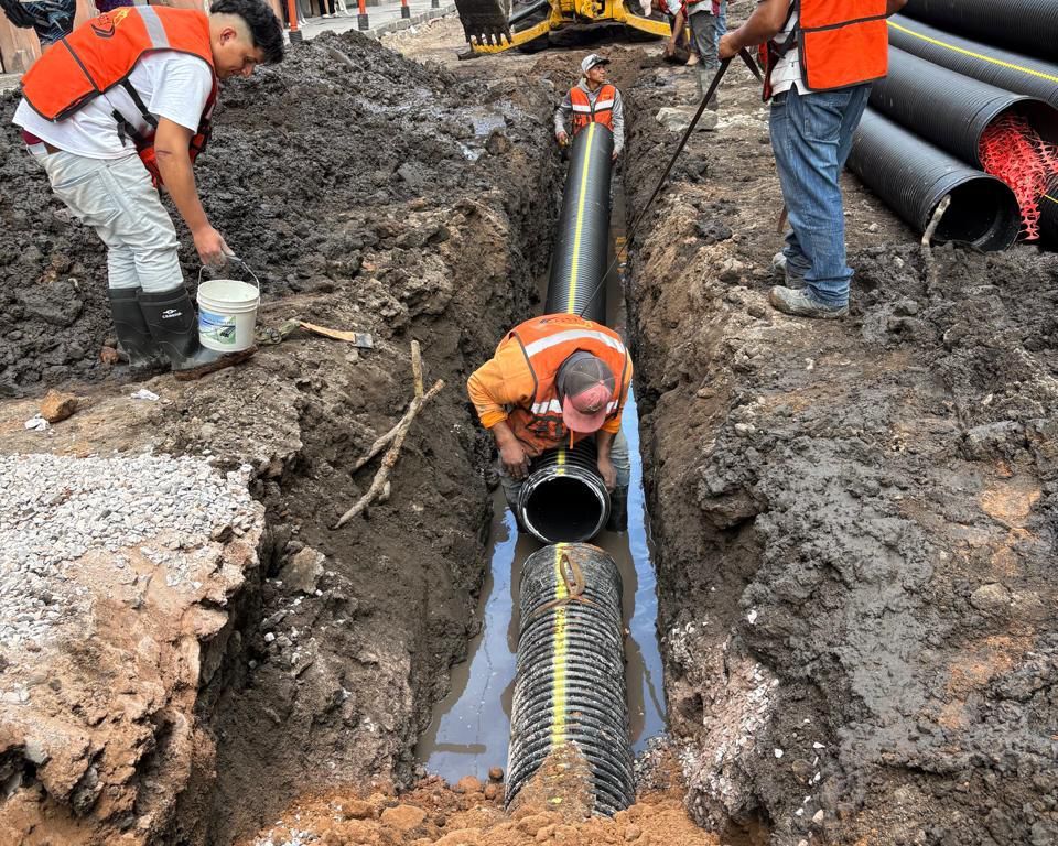 La obra presenta avances importantes en trabajos de red de drenaje y sustitución de descargas domiciliarias