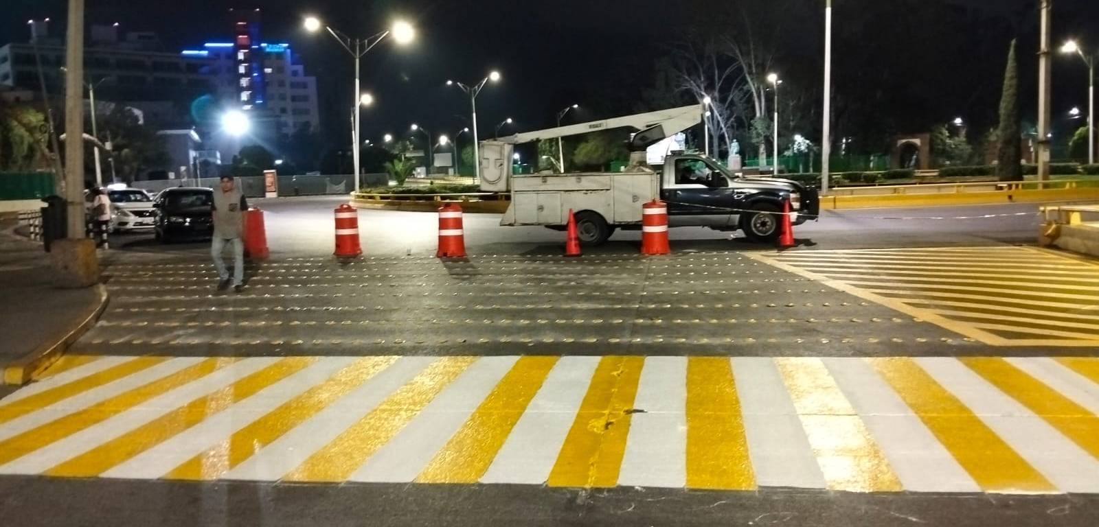 En la avenida Himno Nacional, frente al Hospital Central, además de la señalética horizontal, se instalaron 329 botones reductores de velocidad. También se reforzó la señalización en la incorporación de Venustiano Carranza hacia la glorieta.
