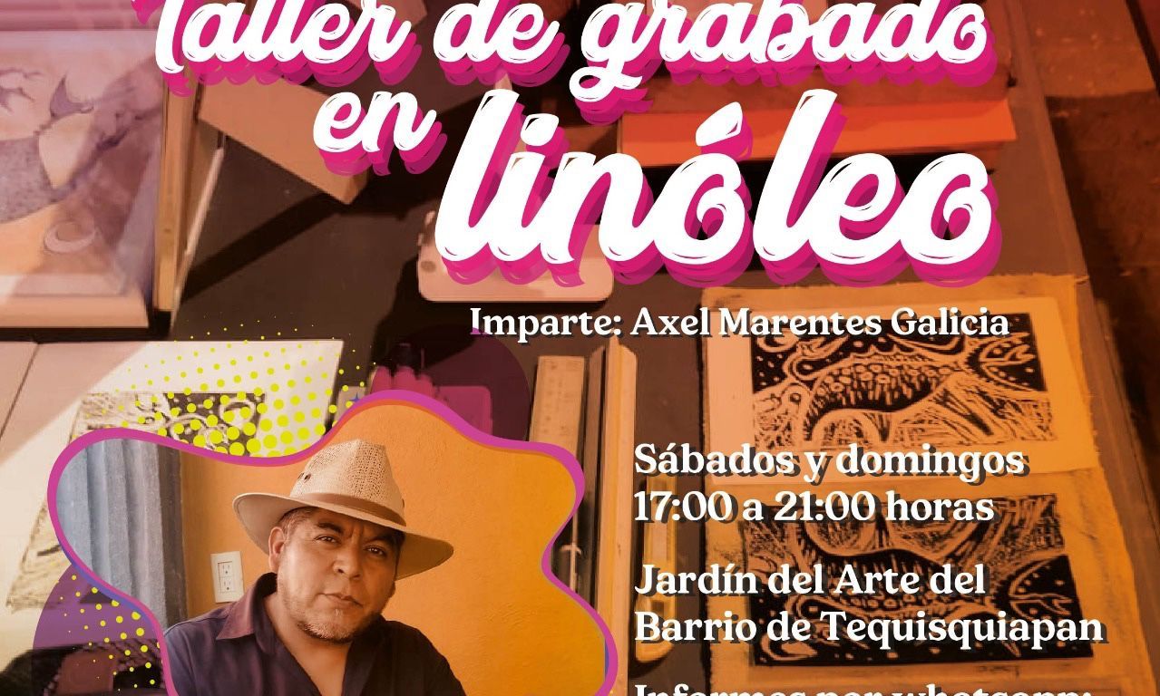 La actividad es dirigida por Axel Marentes Galicia, arquitecto y artista visual reconocido, quien guía a los participantes en el aprendizaje de esta técnica gráfica. El grabado en linóleo consiste en tallar sobre una plancha con gubias o herramientas de corte, para después entintar la superficie y transferir la imagen a papel mediante presión manual o con prensa.