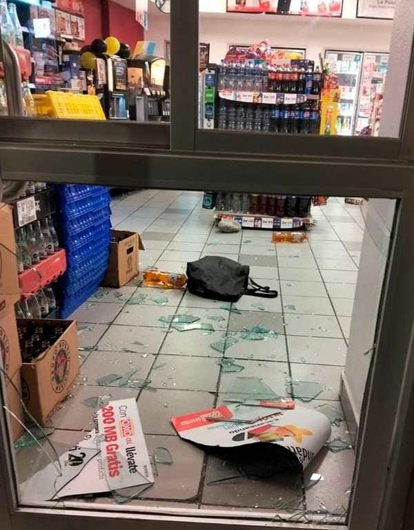 Oficiales municipales realizaban patrullajes de seguridad y vigilancia sobre la colonia Centro cuando fueron informados a través de radiofrecuencia de un robo a una tienda OXXO, indicando que el probable responsable había roto el cristal para introducirse a la tienda y sustraer mercancía.
