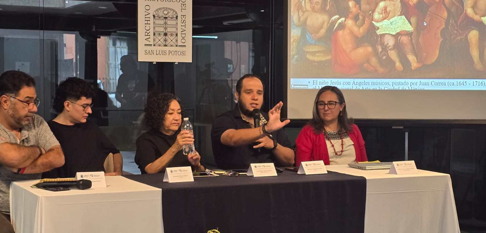 Añadió que, durante el periodo virreinal, los ángeles se figuraron en escenas de devociones marianas, apoteosis, vida de santos, la Sagrada Familia y muchas otras representaciones, donde también aparecen como ángeles músicos. Entre los ejemplos más significativos mencionó la cúpula del templo de San Cristóbal en Puebla, cuya imagen central muestra a la Virgen rodeada de ángeles con diversos instrumentos; y la iglesia del Carmen, en San Luis Potosí capital, en cuyo coro se aprecian personajes alados con instrumentos musicales.
