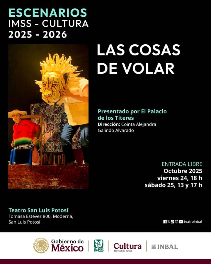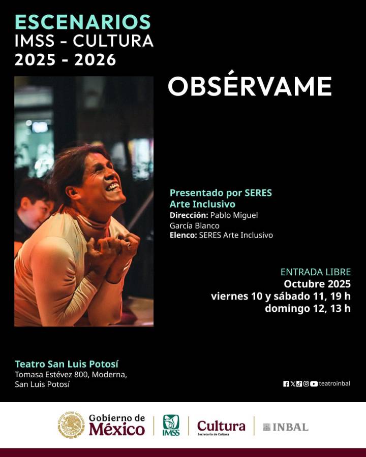 Con esta programación, el Teatro IMSS San Luis Potosí se fortalece como un espacio vivo, abierto y accesible que promueve el desarrollo cultural, la integración social y el bienestar de la comunidad. De esta manera, el IMSS San Luis Potosí refrenda su compromiso de impulsar el arte y la cultura como parte fundamental del bienestar integral, ofreciendo a la población espacios de encuentro que fortalecen la identidad, fomentan la creatividad y promueven la convivencia familiar y comunitaria.