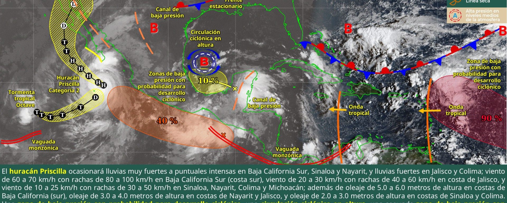 LLUVIAS PUNTUALES INTENSAS, RACHAS DE VIENTO Y OLEAJE ELEVADO EN EL OCCIDENTE Y SUR DE BAJA CALIFORNIA SUR