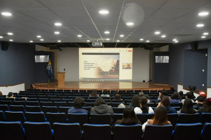 Estudiantes de la Facultad de Ciencias de la Comunicación (FCC) de la Universidad Autónoma de San Luis Potosí (UASLP) conocieron el impacto de la comunicación diplomática que desarrolla el personal del Servicio Exterior Mexicano, a través de una charla virtual impartida en el auditorio de la entidad por el doctor Luis Fernando Gutiérrez Champion, Cultural Counselor & Press Attaché de la Embajada de México en el Reino Unido.