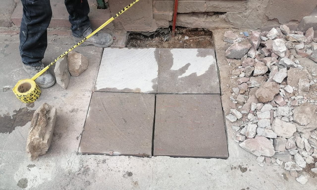 Como parte de estas acciones, y en coordinación con Interapas, la UGCH realizó la colocación de enchapado de cantera tras los trabajos de reparación de una fuga efectuados por el organismo intermunicipal en el Pasaje Zaragoza.
