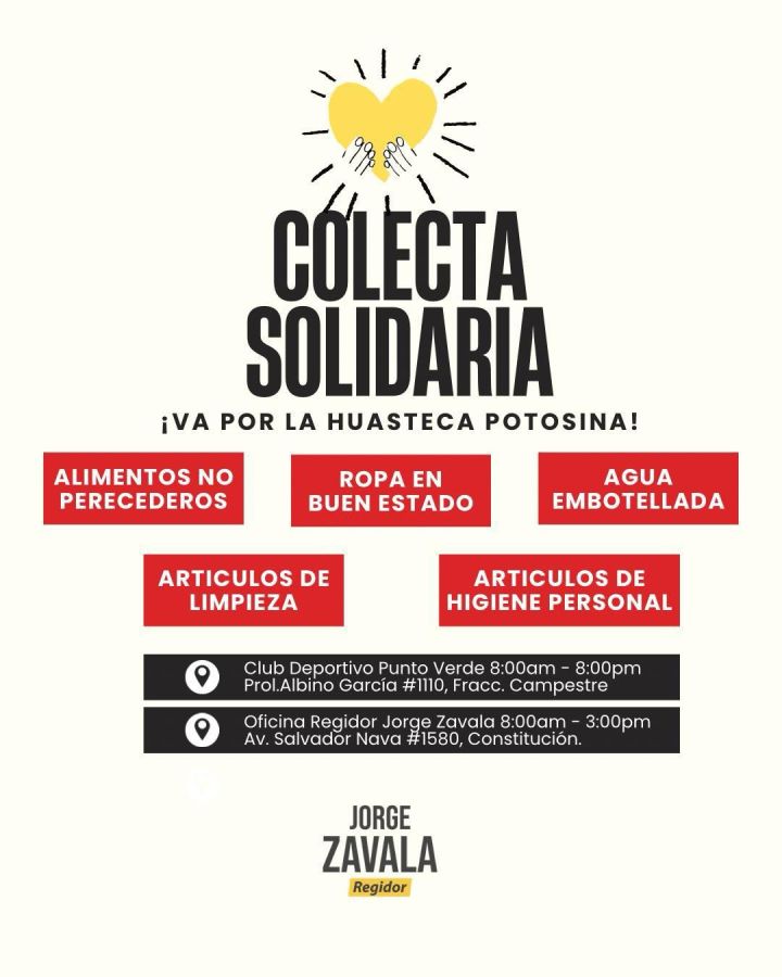 Como muestra de solidaridad, el Regidor ha iniciado una colecta de víveres, artículos de limpieza y productos de primera necesidad en dos puntos: el Club Deportivo Punto Verde, ubicado en Albino García 1120 en el Fraccionamiento Campestre, y su oficina en la Unidad Administrativa Municipal. La colecta se realiza en un horario de 8:00 de la mañana a 2:00 de la tarde, facilitando la participación ciudadana y canalizando el apoyo hacia las comunidades más afectadas.