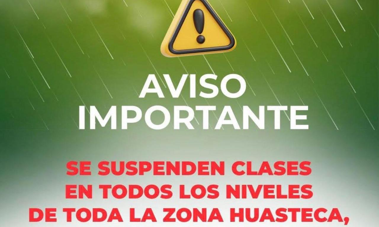 Por instrucciones del gobernador del Estado Ricardo Gallardo Cardona, la Secretaría de Educación de Gobierno del Estado (SEGE) informa que se mantiene suspensión de clases en los municipios que comprenden la zona huasteca norte y sur, derivado de las afectaciones por las lluvias.