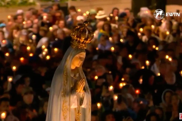 La noche del 12 de octubre, en el 108º aniversario de la última aparición de Nuestra Señora de Fátima y del Milagro del Sol, una multitud se dio cita en su santuario en Cova da Iria (Portugal) para participar en el rezo del Santo Rosario y la procesión de las velas.