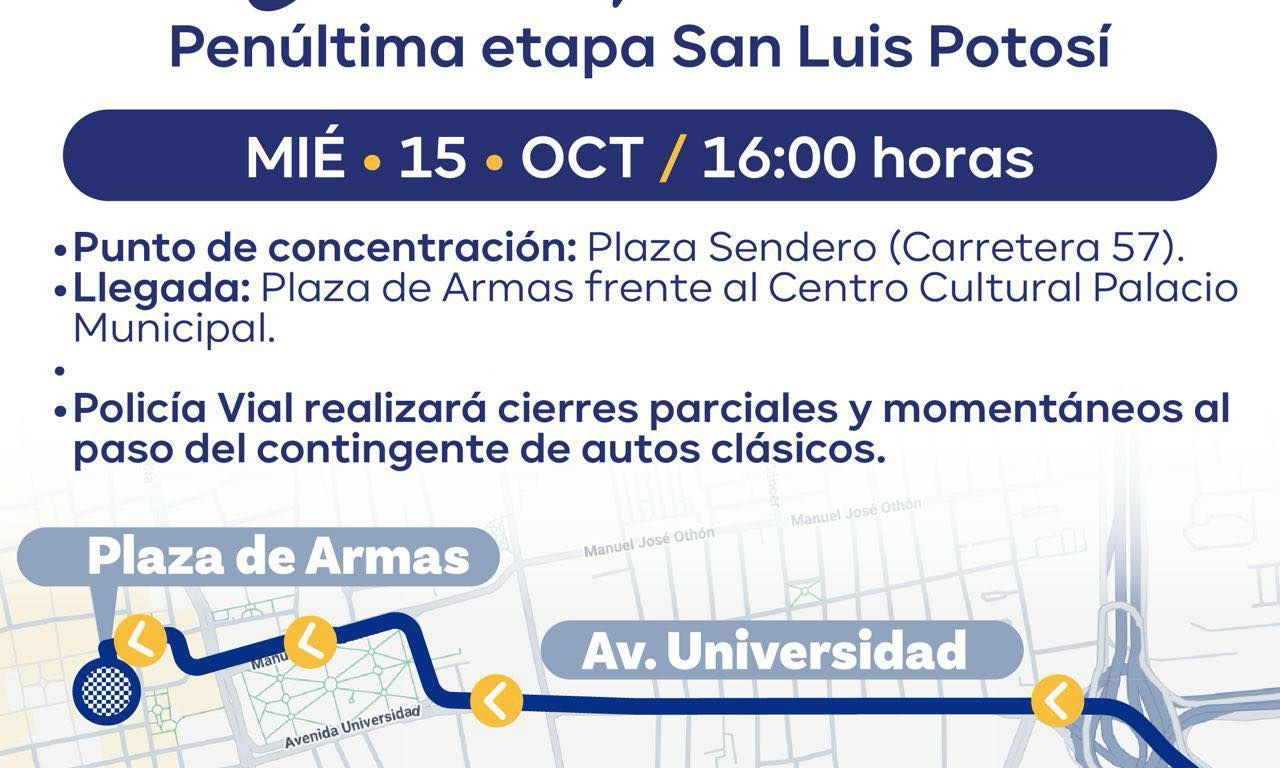 Mencionó que entre los pilotos destaca el potosino Ricardo Cordero, quien actualmente lidera la competencia. “La ruta de ingreso será por Villa de Reyes y posteriormente la Carretera 57, acompañados por elementos de la Policía Vial para garantizar la seguridad durante su llegada a la ciudad”, acotó.