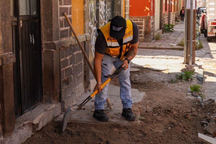 Como parte del programa permanente de mantenimiento impulsado por el Alcalde Enrique Galindo Ceballos, personal de la Unidad de Gestión del Centro Histórico (UGCH) ejecutó trabajos de rehabilitación de la banqueta ubicada entre las calles Independencia y Guajardo, con el objetivo de mejorar la movilidad peatonal y conservar en buen estado esta zona histórica de la ciudad.