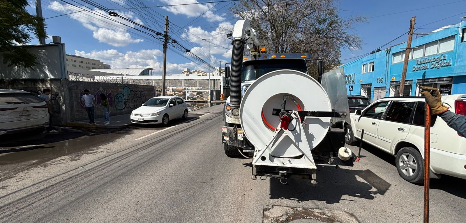 INTERAPAS realizó trabajos de desazolve y limpieza sanitaria sobre la calle Fray José de Arlegui en la colonia Virreyes.