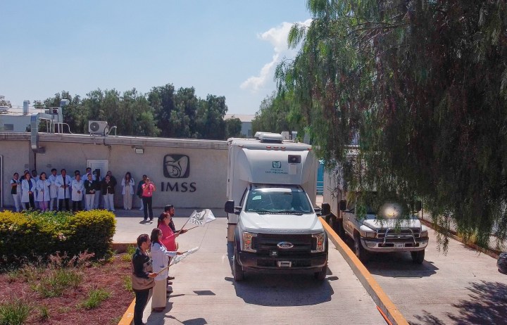 Autoridades del IMSS en el estado, dieron banderazo de salida a la Unidad Médica Móvil que traslada a la brigada de salud conformada por la tríada: médica, enfermera y promotor de Acción Comunitaria.