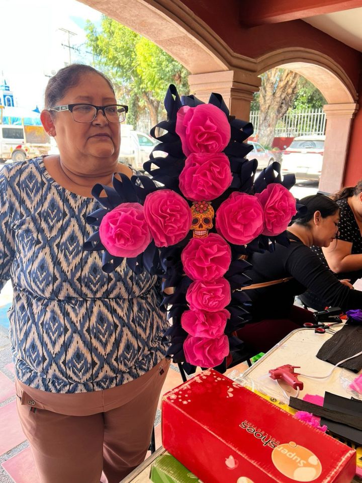 Con motivo del próximo 2 de noviembre, Día de Muertos, la Delegación La Pila del Ayuntamiento de San Luis Capital organiza talleres en sus oficinas municipales, donde personas de todas las edades elaboran flores de papel, calaveritas y otros adornos típicos que llenan de color esta tradicional festividad mexicana.
