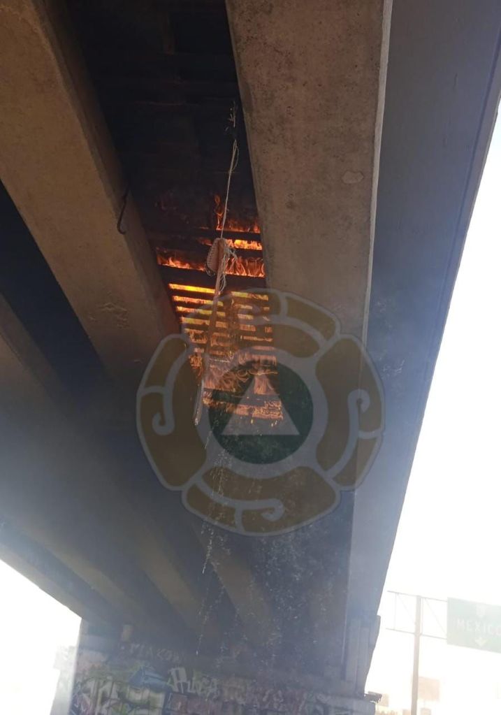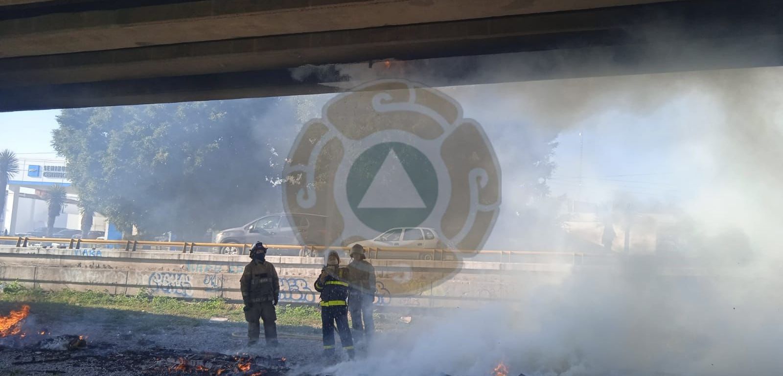 Incendio registrado en la parte baja del distribuidor vial Juárez movilizó a elementos de Protección Civil y al H. Cuerpo de Bomberos; no se reportaron personas lesionadas.