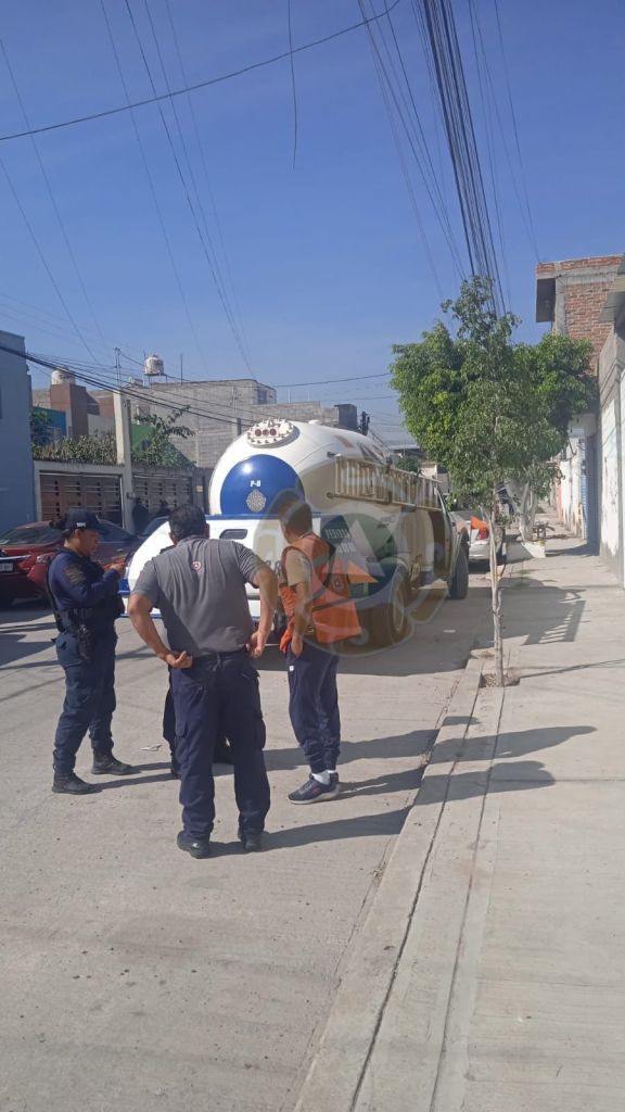 Personal de Protección Civil Municipal acudió a la colonia Simón Díaz tras un reporte de “picteleo”, práctica ilegal que consiste en rellenar cilindros portátiles de gas LP en autotanques, lo que pone en peligro la integridad de la ciudadanía.